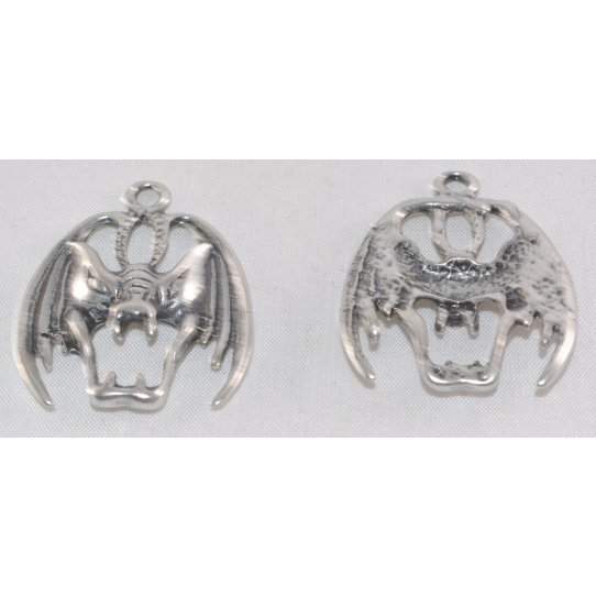 Pendant tête de chauve souris, en zamac plaqué argent.