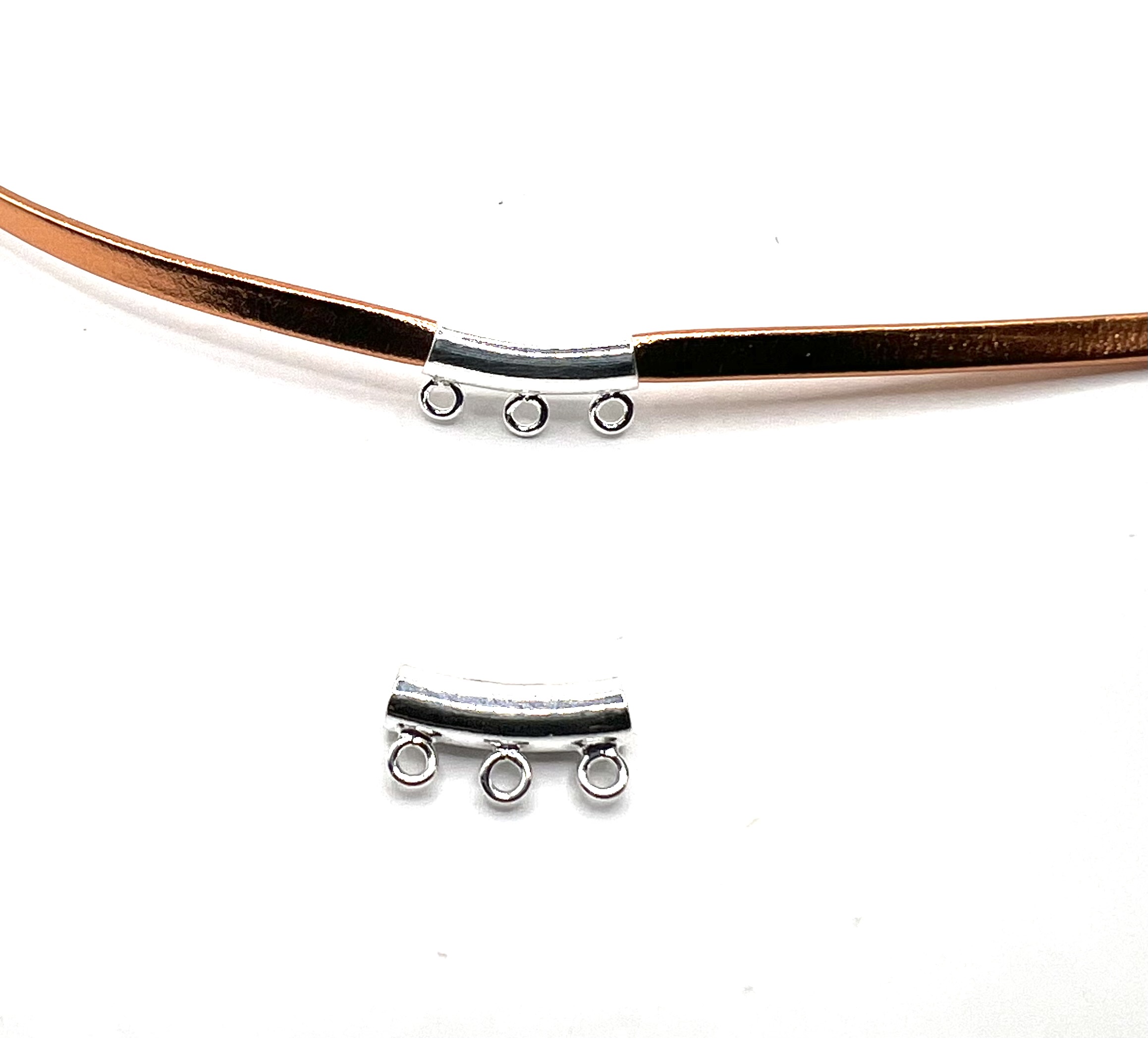Tube en laiton avec trois anneaux pour cuir rond 3m,  plaqué argent vif ou doré à l'or fin 24 carats. Idéal pour créer des colliers.