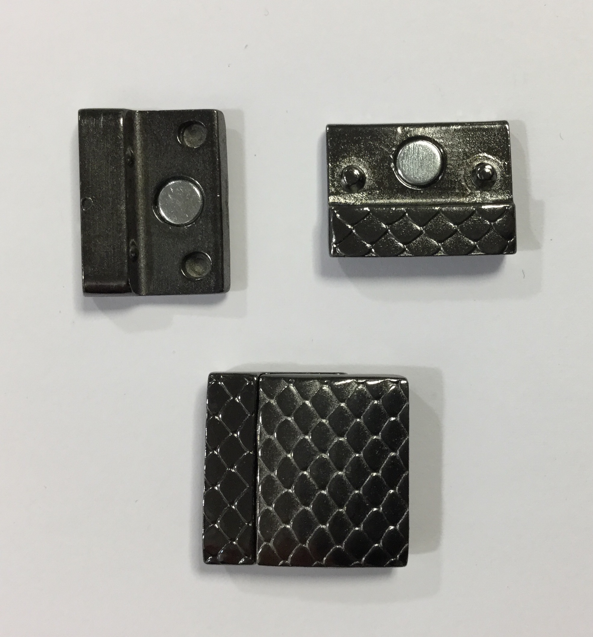 Silver plated pewter magnetic clasp 20 mm, snake pattern.