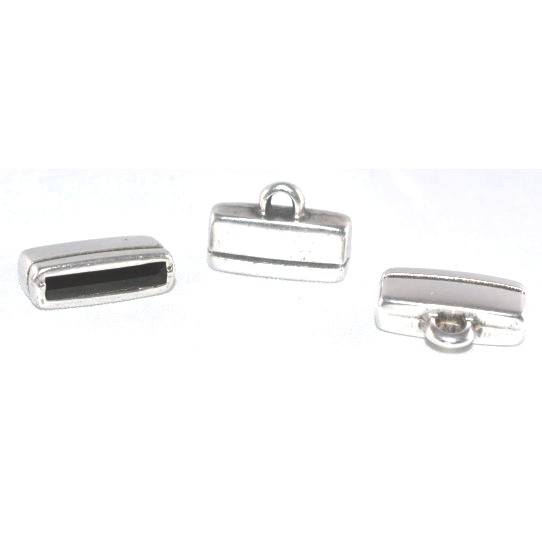 Nozzle ring with leather 13 mm in zinc alloy plated argent.