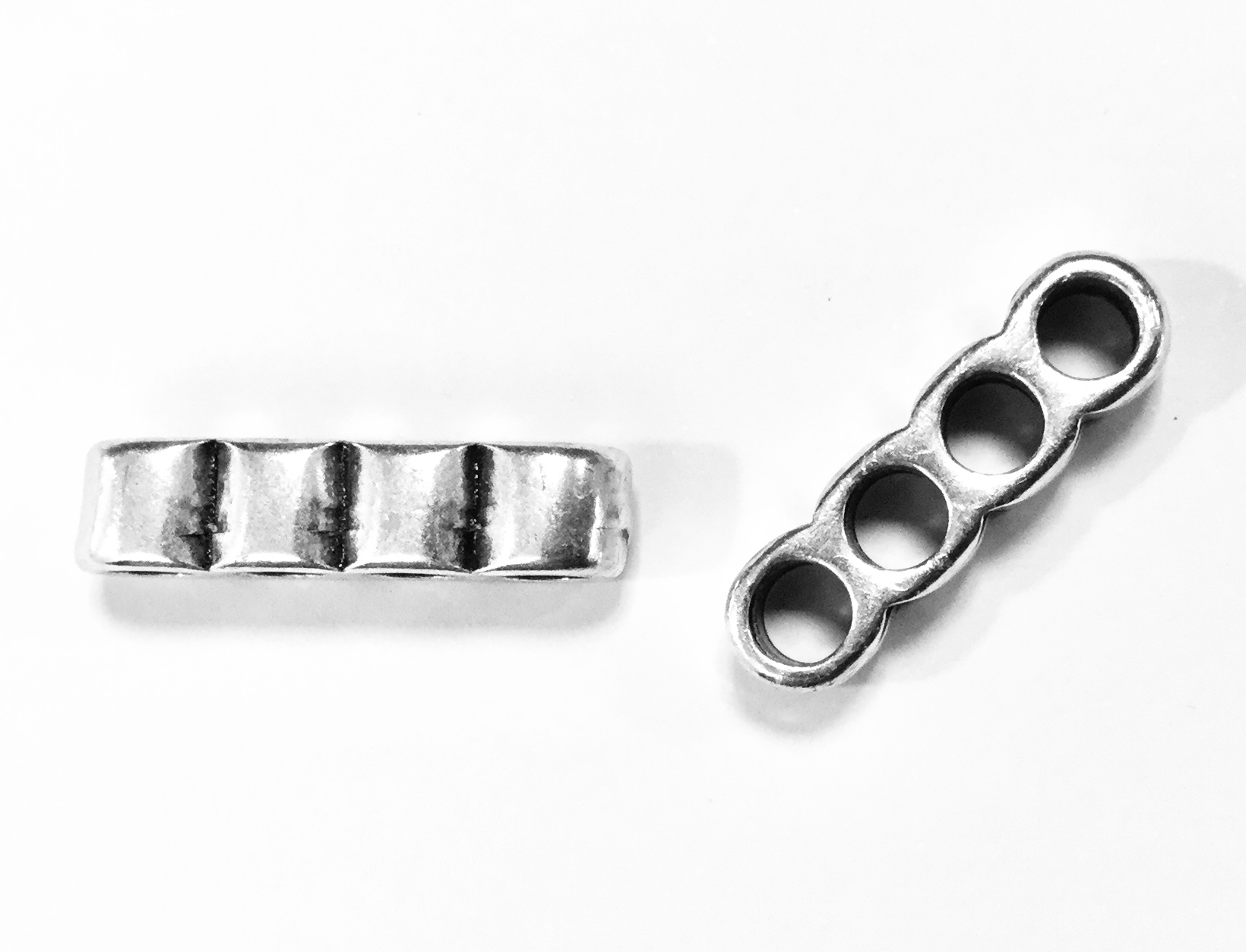 Intercalaire en zamac plaqué argent quatre trous pour cuir jusqu’à 3.85 mm