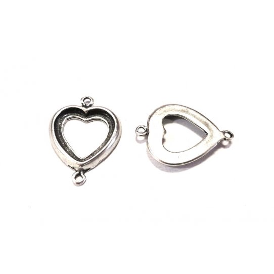 Intercalaire coeur avec deux anneaux, en zamac plaqué argent antique.