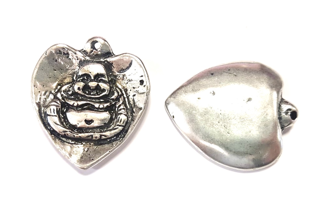 Pendentif coeur avec Bouddha, en zamac plaqué argent antique.