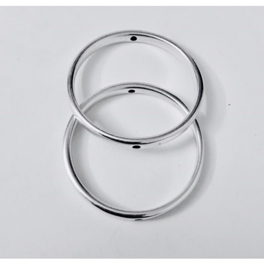 Cercle de montage avec 2 trous face à face, en zamac plaqué argent.