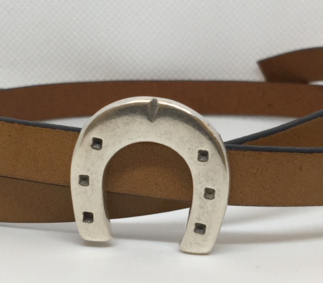 Passant Fer à cheval pour cuir plat 10mm, en zamac plaqué argent antique.