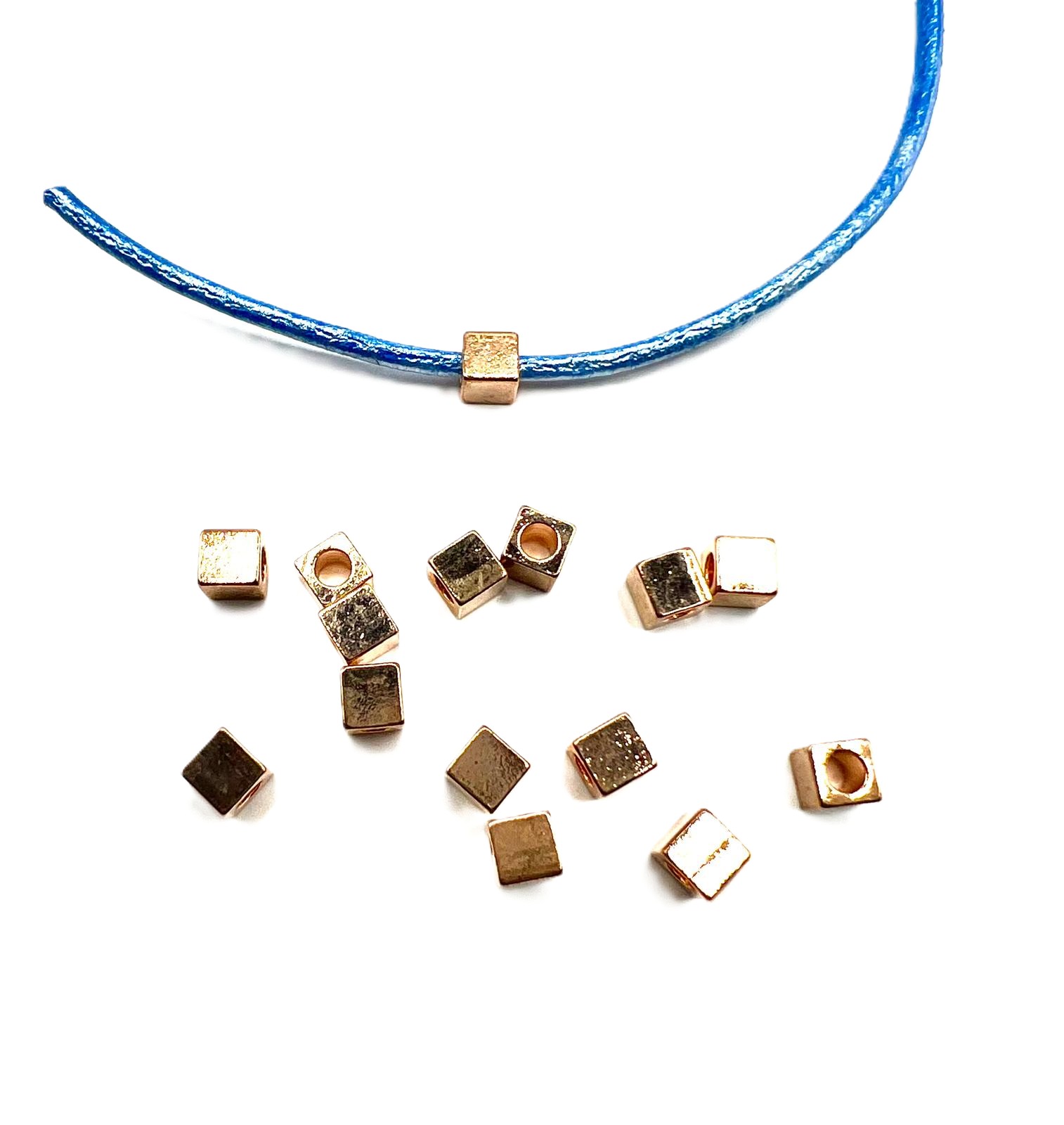 Cube en laiton, plaqué argent vif ou doré ou en or rose en France.