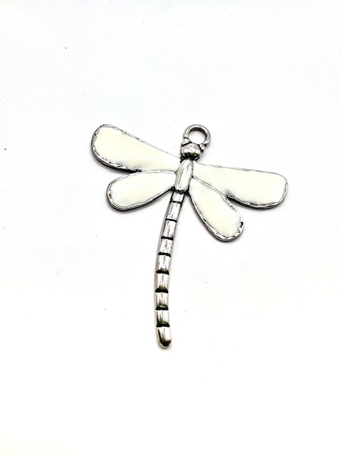 Pendant Grande libellule en zamac plaqué argent antique,émaillé.