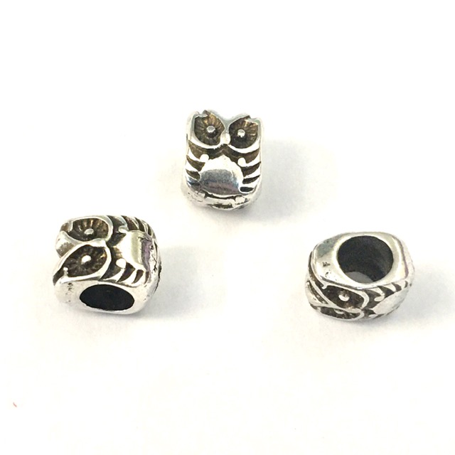 Passant hibou pour cuir rond 4.15mm en zamac plaqué argent antique.