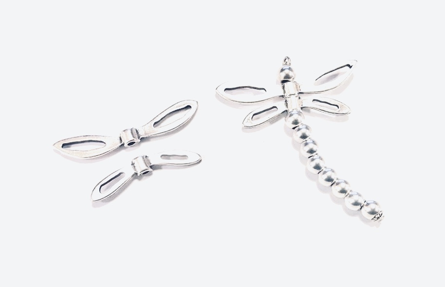 Pendant libellule à créer, en zamac plaqué argent antique.