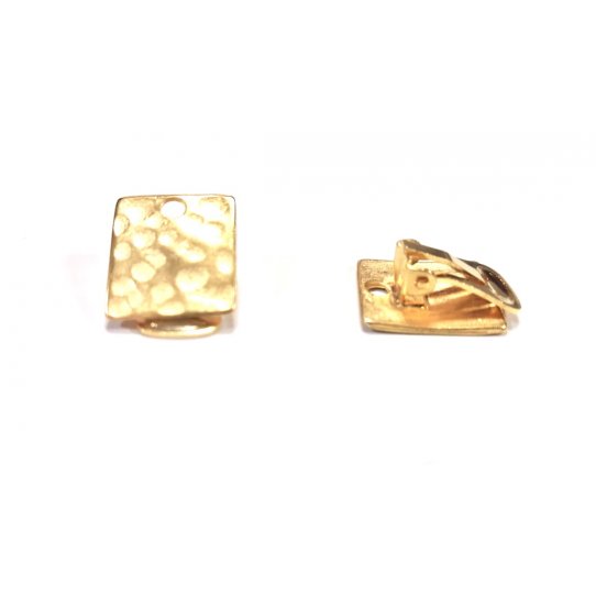 Boucles d'oreilles à clips rectangulaires martelées en zamac doré.