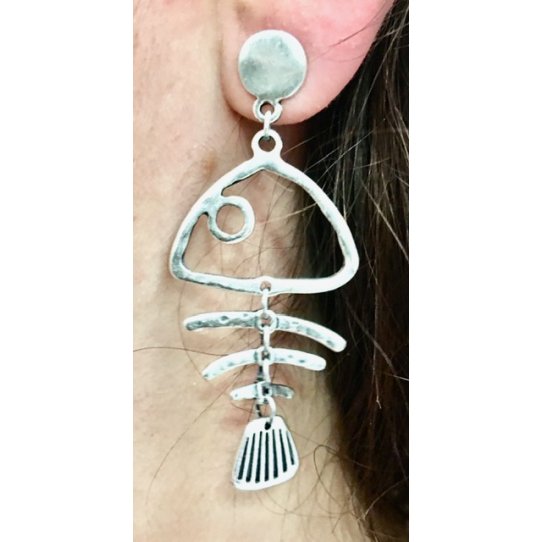 Petit pendant poisson stylisé en zamac plaqué argent antique;