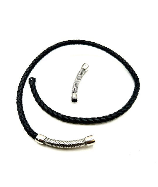 Passant /intercalaire pour cuir rond 5mm en zamac plaqué argent antique
