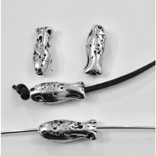 Poisson traversant en intercalaire, massif, en zamac plaqué argent.
