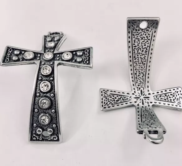 Pièce en zamac plaqué argent avec ou sans motif , formant la moitié d'un bijou - soit un bracelet soit un collier soit une bague.