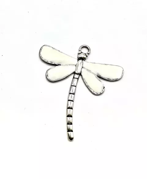 Grande libellule en pendant pour sautoir EMAILLE 79.50 x 71.60 mm - Blanc