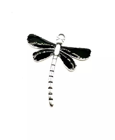 Grande libellule en pendant pour sautoir EMAILLE 79.50 x 71.60 mm - Noir