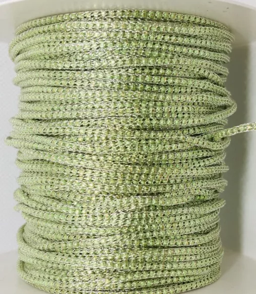 Chaîne billes de couleurs gainées avec maille argent - Vert anis