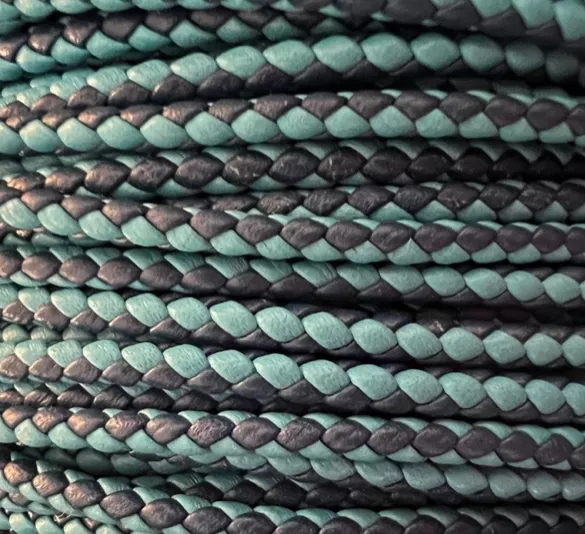 Cuir tressé rond 3mm en bicolore-nouvelles couleurs - turquoise et bleu