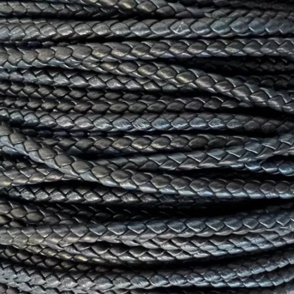Cuir tressé rond 3mm en bicolore-nouvelles couleurs - Bleu et bleu marine