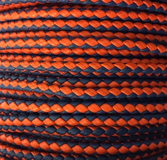Cuir tressé rond 3mm en bicolore-nouvelles couleurs - orange et bleu