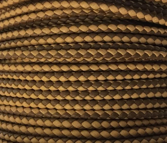 Cuir tressé rond 3mm en bicolore-nouvelles couleurs - Marron clair