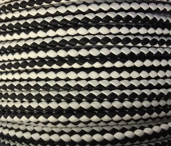 Cuir tressé rond 3mm en bicolore-nouvelles couleurs - Blanc