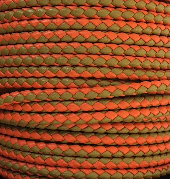 Cuir tressé rond 3mm en bicolore-nouvelles couleurs - orange-kaki orange et sigaro