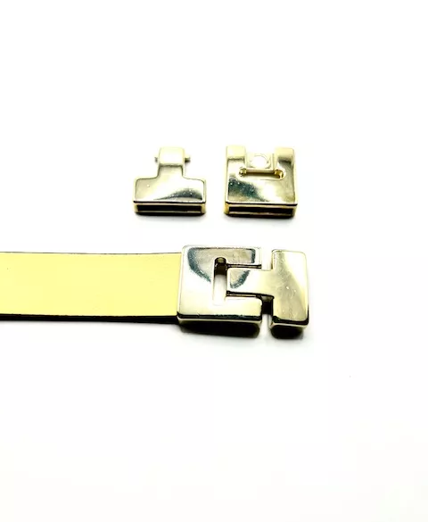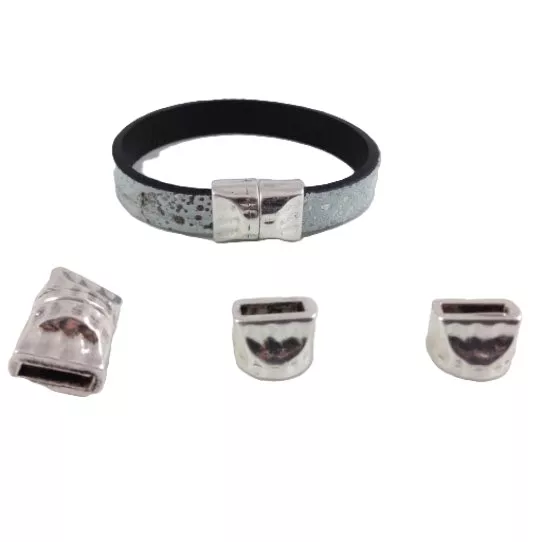Fermoir aimanté en étain pour cuir 15mm plaqué argent motif spirale - Noir