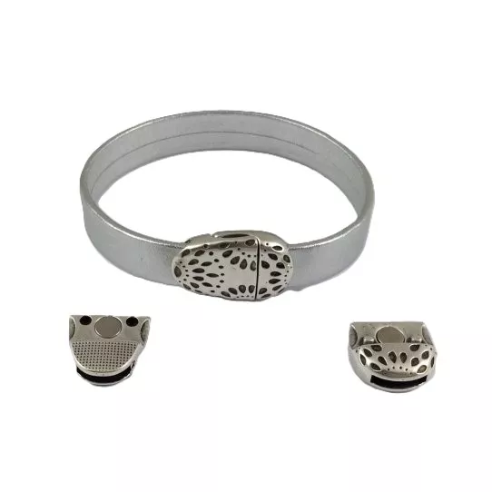 Fermoir aimanté en étain pour cuir 15mm plaqué argent motif spirale - Argent