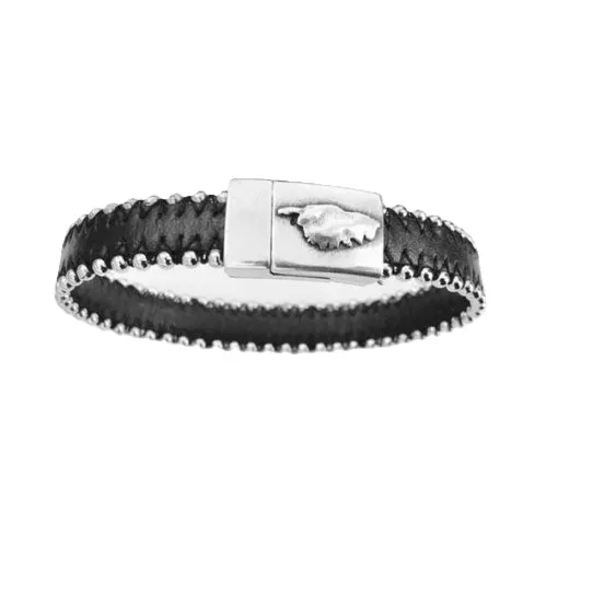 Fermoir boule en zamac plaqué argentdeux fentes pour cuir 5mm avec 1 anneau accroche breloque