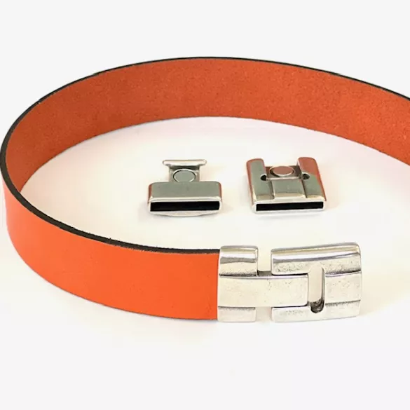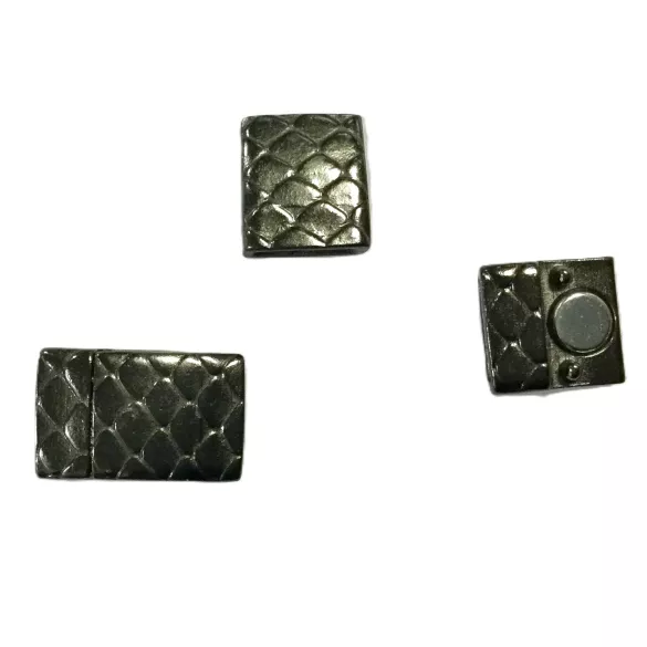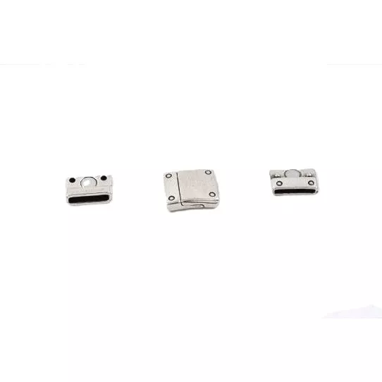 Fermoir aimanté en étain avec 4 clous pour cuir plat 20mm - Argent antique