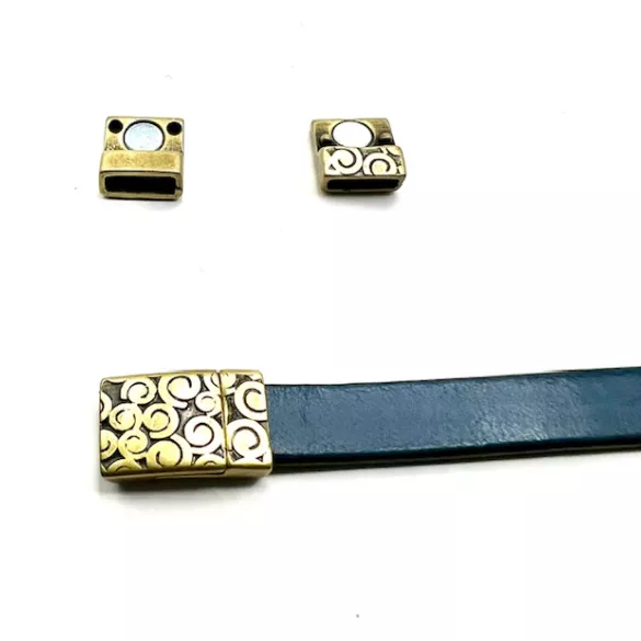 Fermoir aimanté en étain pour cuir 10mm avec motif étoiles allongés - Argent or rose