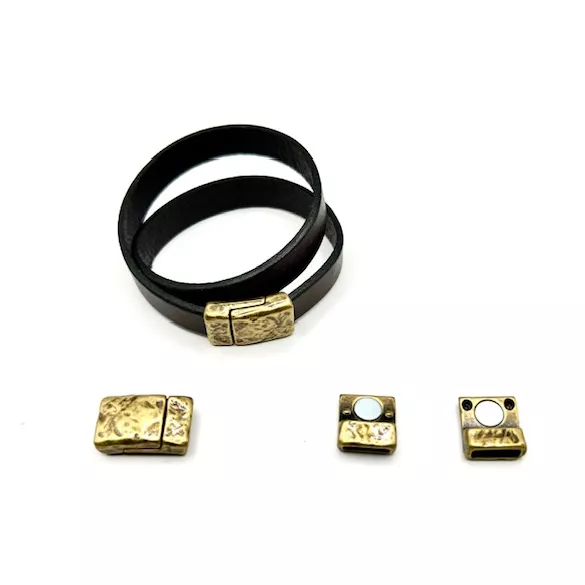 Fermoir aimanté Oeil de Tigre ou lapis lazuli pour cuir 10mm - Marron